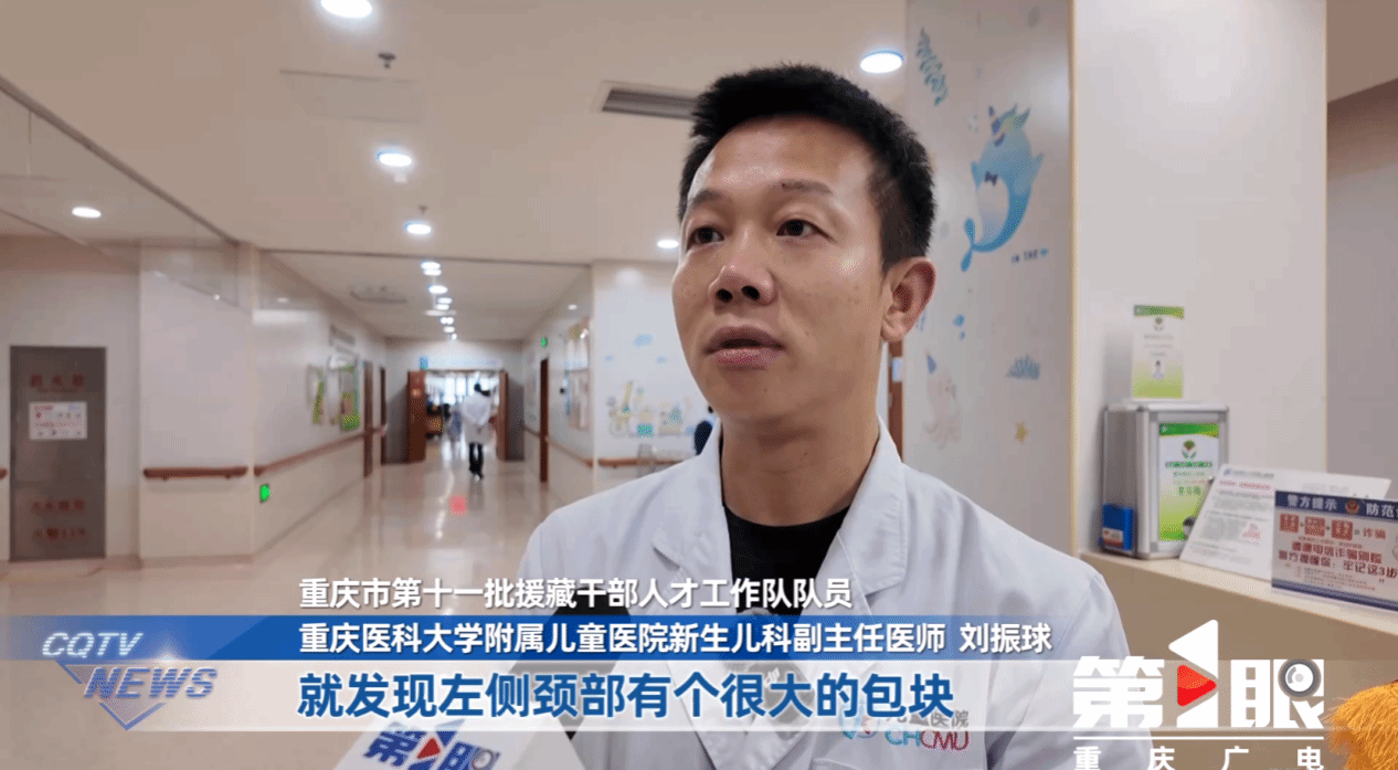 这名患儿于2025年12月18日在昌都市人民医院产科出生,出生后即发现左侧颈部存在巨大包块。经会诊和影像资料分析,初步考虑为囊性病变或淋巴管瘤。由于包块位置特殊、范围较大,昌都当地医疗条件有限,刘振球当时便建议家属尽早转往内地进一步治疗。