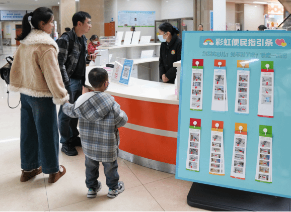 不同于传统指引“文字堆砌”的刻板模式,彩虹指引条用创新让便民服务更友好: