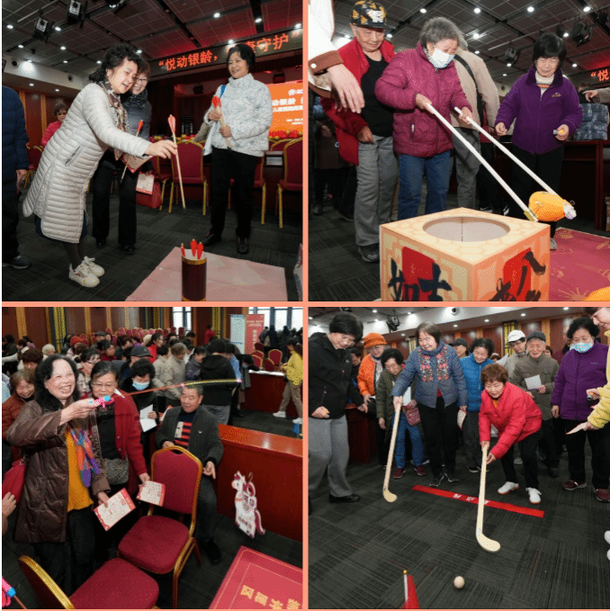 游园环节将活动推向高潮。四个游戏各具特色:“好运投壶乐”考验眼力与定力;“巧手夹元宝”展现手上功夫;“马年来抓马”趣味横生;“幸运来锤丸”挑战精准度。老同志们或凝神屏息,或笑语盈盈,仿佛重回青春岁月。