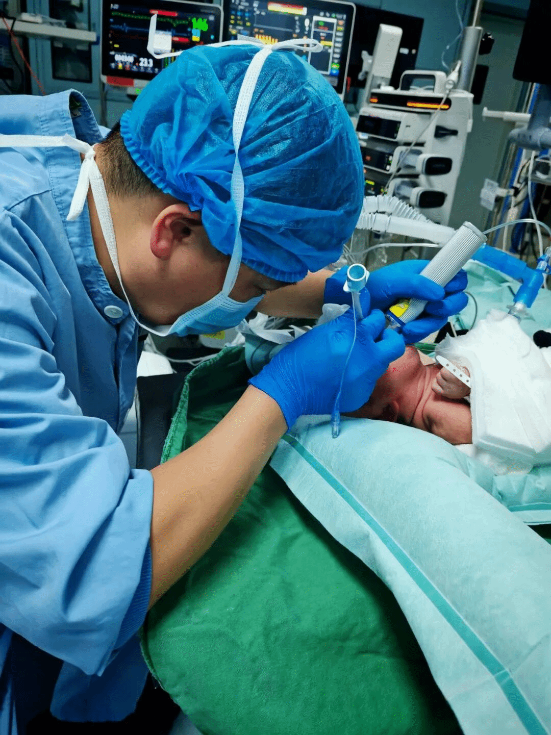 麻醉医生插管、普外新生儿外科医生进行超声诊断