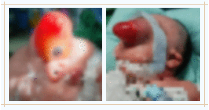 宝宝出生即被发现眼部巨大异常凸起,立即120转运至重医附属儿童医院。