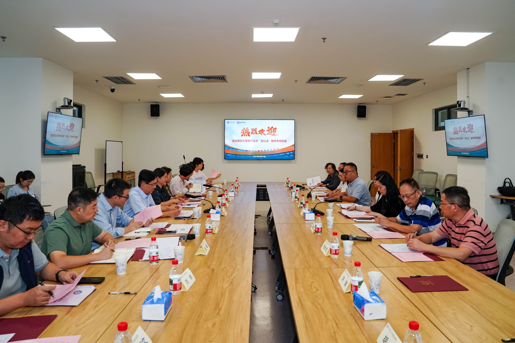 2025年9月23日,重庆医科大学儿科学院在两江院区,顺利迎接学校来华留学“双认证”迎检工作专项检查。国际合作与交流处处长兼国际教育学院院长王羽、教务处副处长何堃、国际教育学院副院长李培森等工作组成员,以及杨致邦、缪李丽、张大志、贺桂琼为组长的专家组莅临检查。翟瑄副院长携学院教务处、研究生管理处、教研室主任、导师代表、教师代表等参会。