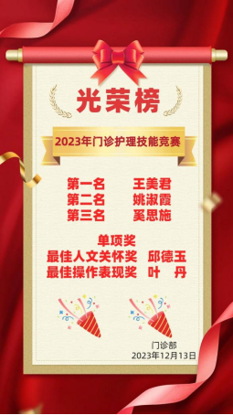 冬风浅浅入,梅花盛开来,为强化我院门诊护理团队静疗安全意识,提升护士专业技术水平,保障患者输液安全,2023年12月12日,在门诊部技能组的精心组织下,以“‘静’心守护,‘脉’向安全”为主题的2023年门诊部静脉穿刺竞赛,在渝中院区科教楼409教室拉开了帷幕。