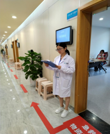 7月27日早上7:20,各考室的考务人员即已经到场准备;7:30,第一批考生开始签到;7:50,考官全部就位;8:00,考核正式开始。本次考核共设3个考试站点、22个考室,包括:急救基本技能站(5个考室),注射技术技能操作站(8个考室),综合技能操作站(9个考室)。考生从1楼的学术会议厅签到后,专人护送到11号电梯口,乘坐专梯到3楼,进行综合站的考核;完成综合站考核后,专人引导并乘坐12号电梯到2楼,分别进行注射站和急救站考核,完成全部考核后离场。考生的路线引导采用了信息引导+志愿者引导双重保障,确保考生单向循环、有序应考;考官的考评打分方式为人手一个Pad,指尖轻触间即已经完成评分并知晓考生的总分情况,不必费心去计算。考官们都称赞这样的考评方式高效、便捷、友好。考核中的物资管理及各考室的运行保障,采用了项目负责人负责制,各项目负责人带领2-4名志愿者,保障考生的物资准备充足而不浪费、各考室考官工作有序进行。尽管天公不作美,从小雨淅沥到大雨倾盆,但考核工作井然有序地运行,下午3点多钟,就完成了915个考核项目。