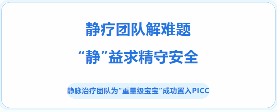 近日,在重医附属儿童医院静脉治疗精进团队的高效协作下,新生儿组及儿童组团队成员协作为内分泌科一位“重量级”宝宝成功置入PICC,解决了护理人员及家属的燃眉之急,为患儿搭建起至关重要的生命航线,彰显了静脉治疗团队精湛的技术与精诚合作的精神。