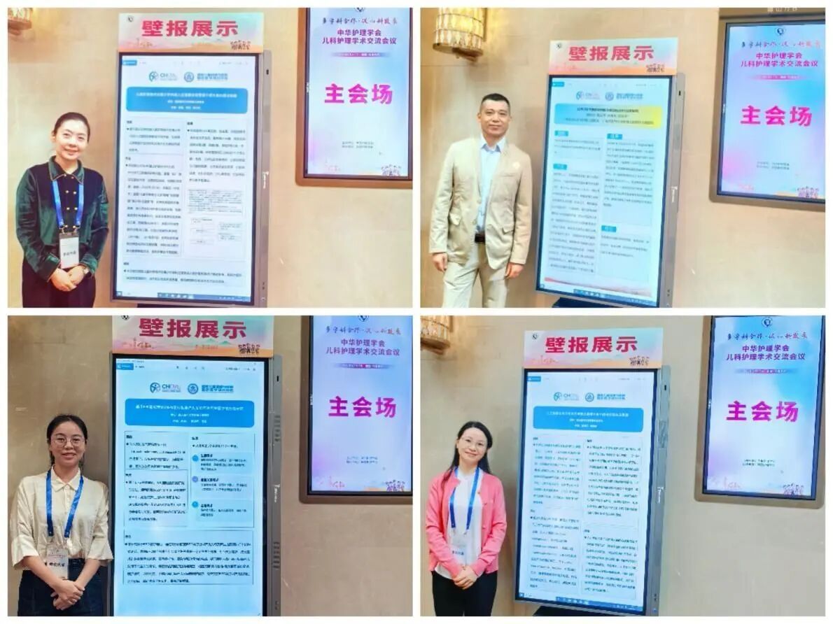 肝胆外科易强护士长以《儿童肝移植术后青少年向成人过渡期自我管理干预方案的循证构建》、神经外科郭松领副护士长以《超声引导下静脉穿刺练习模型的设计与应用研究》、消毒供应中心副护士长王艳红以《人工智能在先天性白内障患儿弱视训练中的研究现状及展望》、新生儿科朱小川老师以《基于ERG需求理论的BPD氧疗极早产儿父母居家照护需求的质性研究》在此次会议上做壁报交流,引起国内同行的热烈讨论与关注。