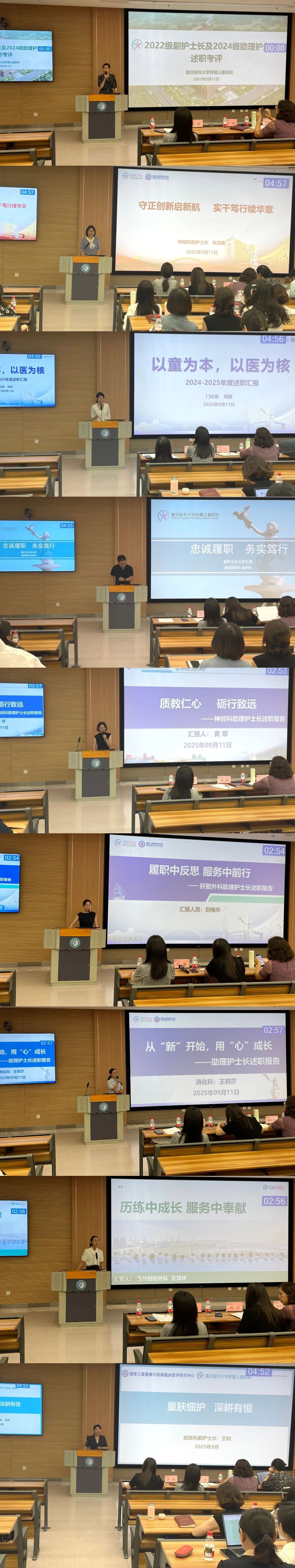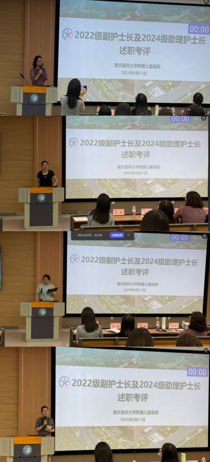 护理部负责人崔璀副主任首先对考评工作进行动员,她提到这是一次分享交流和互相学习的好机会,希望大家既能“亮成绩”,用数据和案例展现任期内的管理实效与创新举措,也能“找不足”,坦诚剖析工作中的短板与待改进之处;更能“学经验”,在聆听汇报中借鉴他人的优秀做法,拓宽管理思路。紧接着各位副护士长、助理护士长依次汇报履职情况。他们以详实数据为支撑、生动案例为依托、丰富图片为辅助,全面展示了过去一年在护、教、研、管等方面的工作成果;同时直面问题,深入剖析工作中的不足及根源,并清晰制定了下一年任期的工作计划与改进方向。