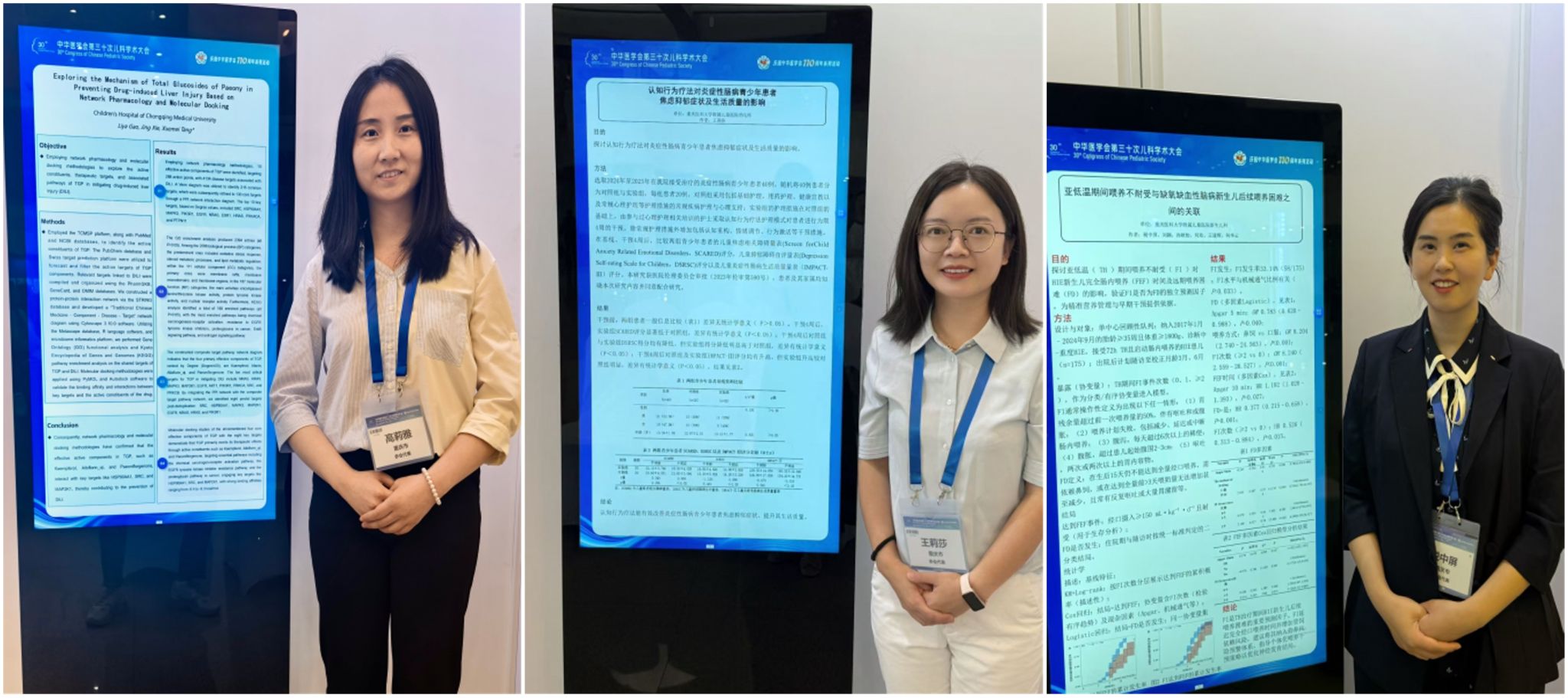 高莉雅以《Exploring the Mechanism of Total Glucosides of Paeony in Preventing Drug-induced Liver Injury Based on Network Pharmacology and Molecular Docking》和《儿童风湿性疾病心理社会健康量表的构建及信效度检验》,税中屏以《亚低温期间喂养不耐受与缺氧缺血性脑病新生儿后续喂养困难之间的关联》,王莉莎以《认知行为疗法对炎症性肠病青少年患者焦虑抑郁症状及生活质量的影响》在此次大会上做壁报交流,引起国内同行的热烈讨论与关注。