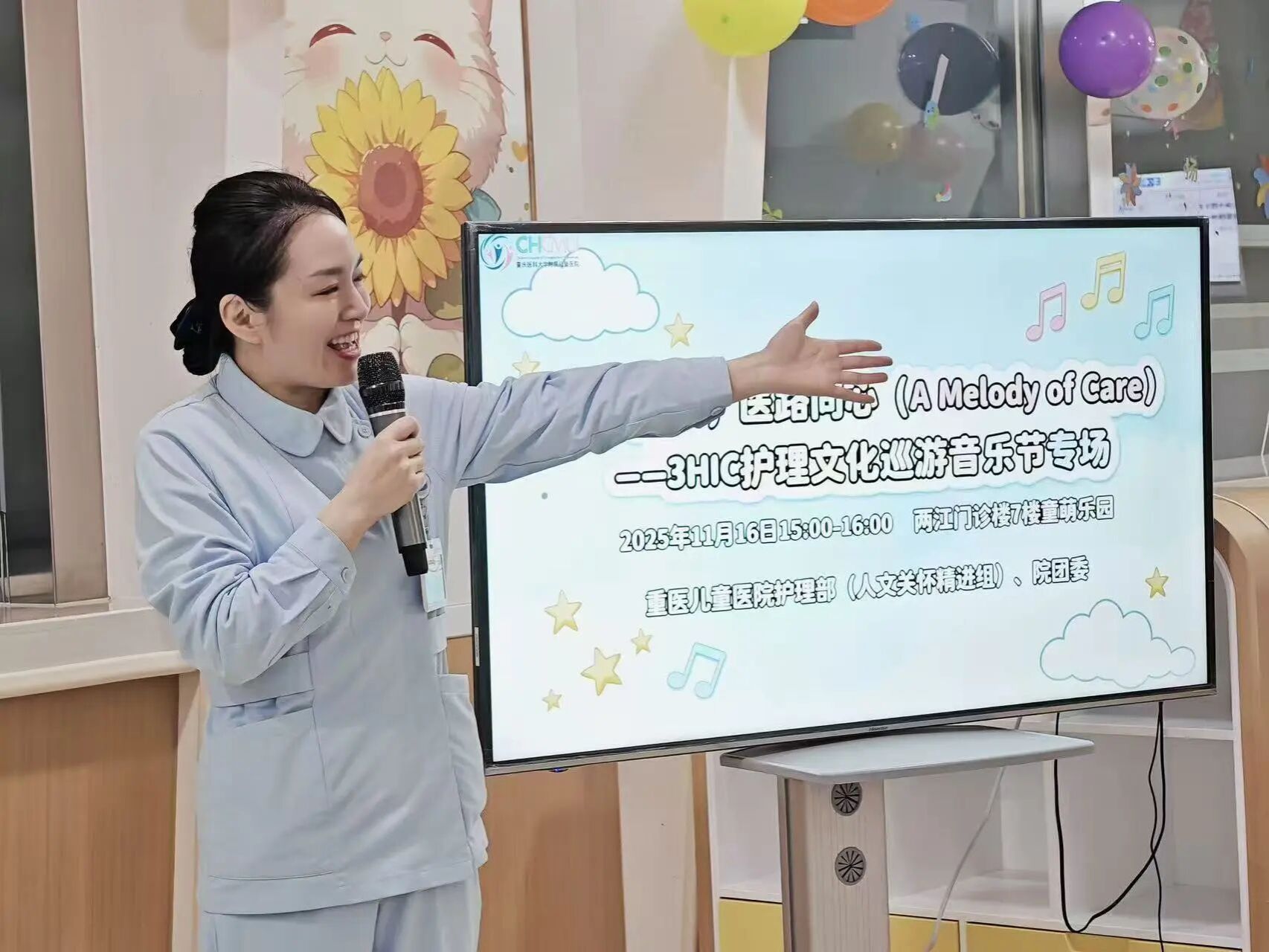2025年11月16日下午,一场以“童声同频,医路同心”为主题的3H1C人文关爱巡游音乐节,在重庆医科大学附属儿童医院两江院区门诊7楼童萌乐园温情举行。活动将音乐艺术与医院文化相融合,通过一系列精心准备的节目与互动,为来院患儿和家属带来了一个温暖而难忘的午后。现场共有30余名孩子与家长参与,歌声、笑声与掌声此起彼伏,汇聚成一片治愈的海洋。