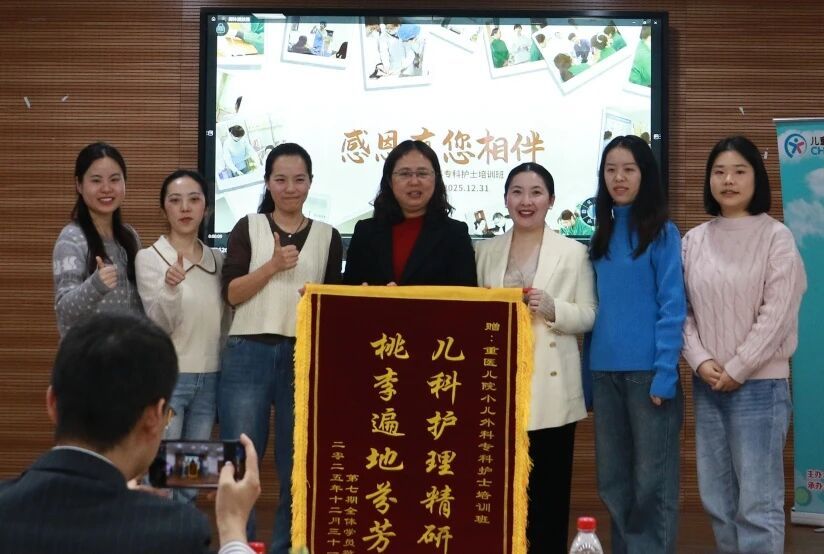 在重庆市卫健委及重庆医科大学附属儿童医院各级领导的悉心指导与大力支持下,我院小儿外科护理团队承办的“重庆市第七期小儿外科专科护士培训班”于2025年12月31日在两江院区顺利举行结业仪式。护理部崔璀副主任、范娟科护士长、外科教研室郭振华副主任及儿外科全体护士长出席了本次活动。