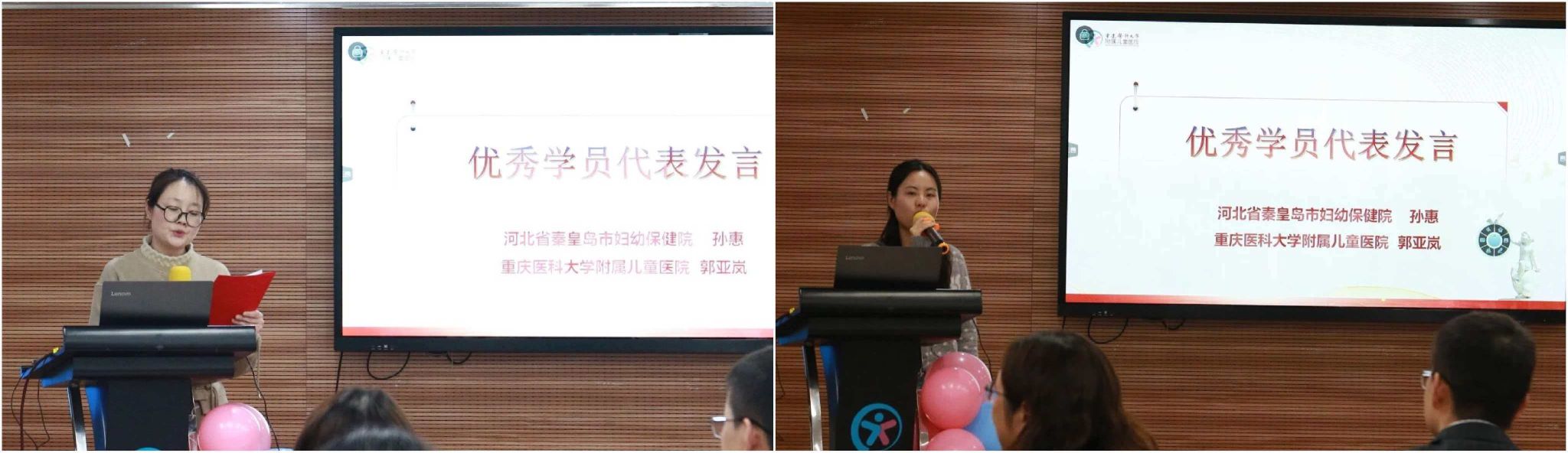 接着,来自河北省秦皇岛市妇幼保健院的孙惠与重庆医科大学附属儿童医院的郭亚岚代表学员发言,她们深情回顾了师生共度的宝贵时光,感悟三个月来自己和学友的学习收获与友好交流,对培训基地的有序安排与带教老师的辛勤付出表示衷心感谢,她们表示,将以专科护士结业为新的起点,持续精进专业,为儿科护理事业贡献力量。