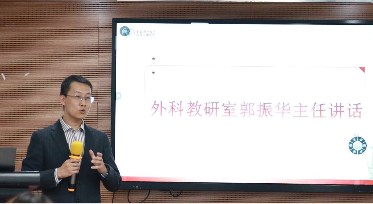 郭振华副主任代表外科教研室发言。他在发言中指出,护士不是医生的附属品,而是医生最好的搭档,护士是推动小儿外科诊疗水品高质量发展的核心力量。郭振华副主任祝贺全体学员顺利结业,并勉励大家将培训所学切实应用于临床,不断提升专业水平。