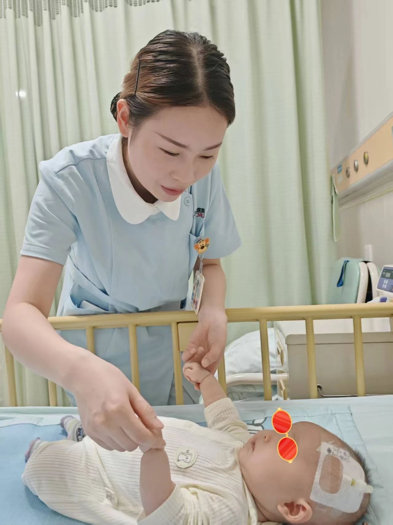 “晓霞阿姨~”的呼唤如同晨间风铃。胡芝的带教老师赵晓霞,是这份温暖的引路人。她发药像送“勇气糖”礼物包,叮嘱化作温暖祝福;她耐心地为不识字的孩子家属画“发光”的日月代表服药的时间,夜班时悄悄给孩子盖好“星星被”。赵老师润物无声的关怀,抚慰了患儿和家属的不安,也深深影响着胡芝等规培护士,传递着护理的温度与用心。