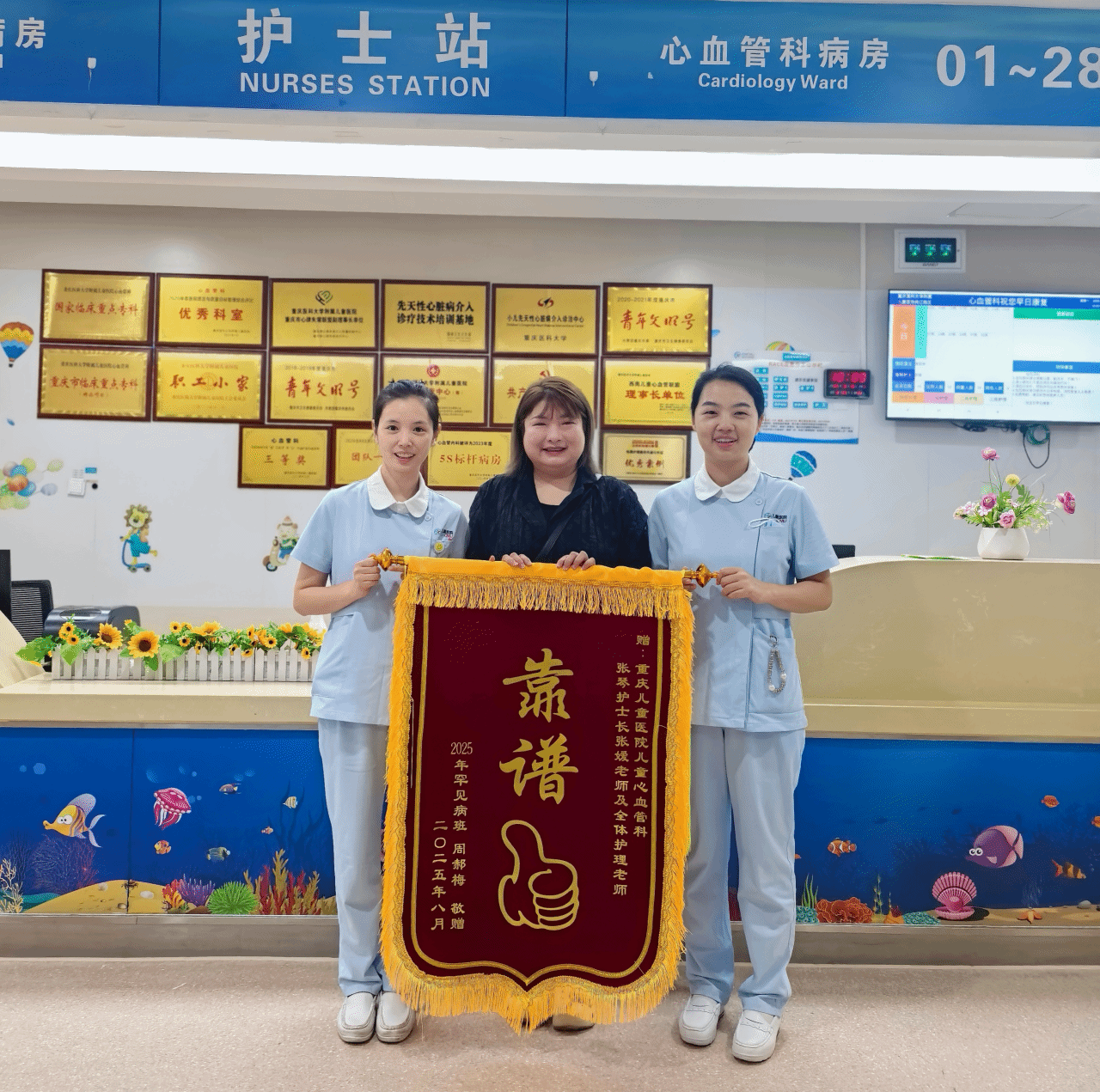 重庆市护理学会儿童罕见病专科护士培训班学员周郝梅为心血管科教学团队赠送锦旗