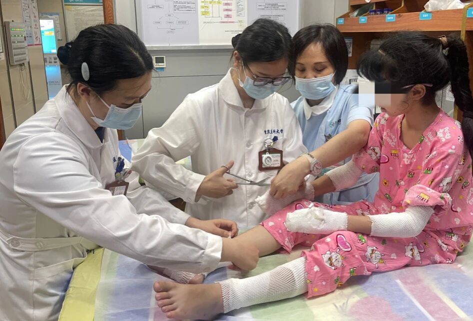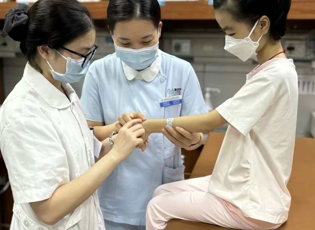 病房里来了一位脓疱型银屑病的患儿,全身布满红斑、鳞屑,浑身还散发着难闻的气味。陈亦果老师陪我去给患儿测血压,望着患儿布满鳞屑的手臂,我迟疑了。陈老师看到我的迟疑,什么也没说。她拿起一张无菌大纱垫在患儿的上臂,熟练的为患儿测量了血压。走出病房,陈老师问我:“紧张吗?”我点点头,“这个疾病带给我的震撼太大了,我一时有点不适应。”陈老师说:“脓疱型银屑病皮损可以遍布全身,我们在测量血压、扎压脉带时要提前用无菌大纱垫在皮肤上,这样可以保护局部脆弱皮肤,也可以缓解患儿的不适感。”一个普普通通的测量血压,里面的细节却有那么多。银屑病患儿和他们的家庭承受的不仅是身体的不适,更是无数次注视、疑问甚至回避所积累的敏感。那一刻我领悟到,护理不仅是技术的实施,更是尊严的守护。