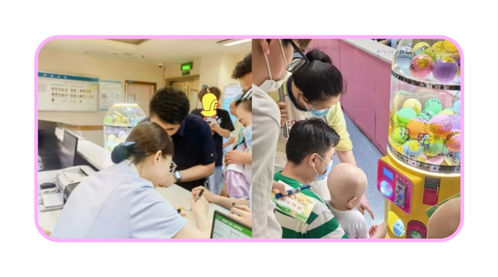 除了温暖的陪伴,肿瘤外科还与奇恩志愿者团队共同推出了“勇敢盖章奖励”计划。每一次配合治疗、每一次勇敢面对,孩子们都会获得一枚“勇敢勋章”。集满10枚,就可以玩一次“勇气扭蛋机”,收获一份小奖励。