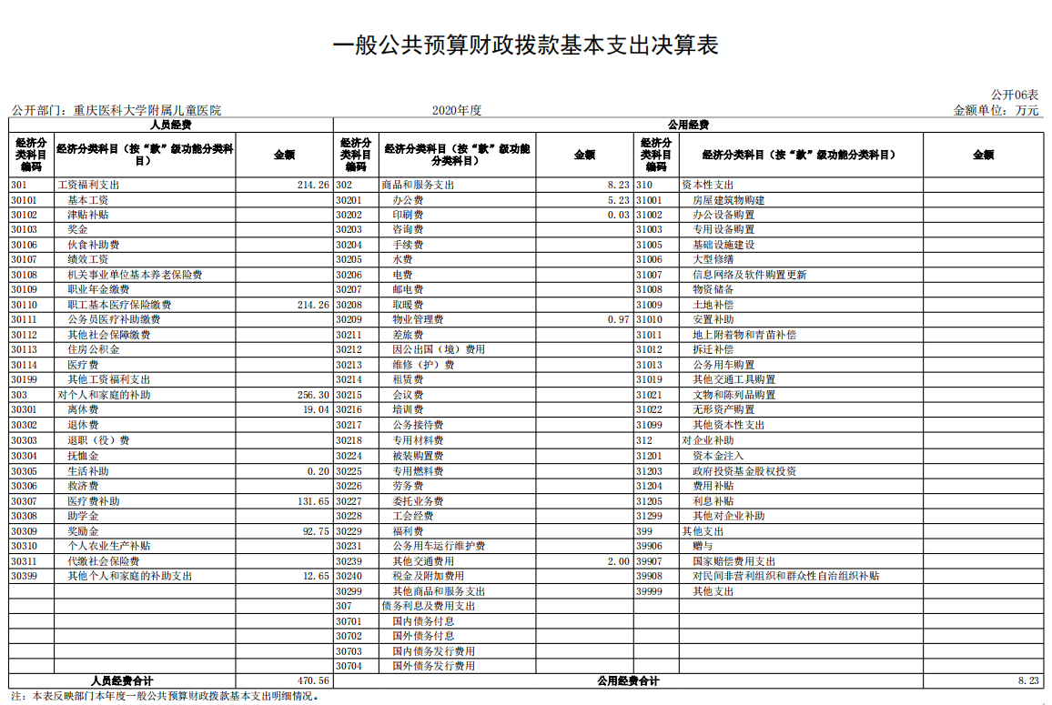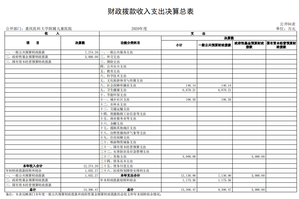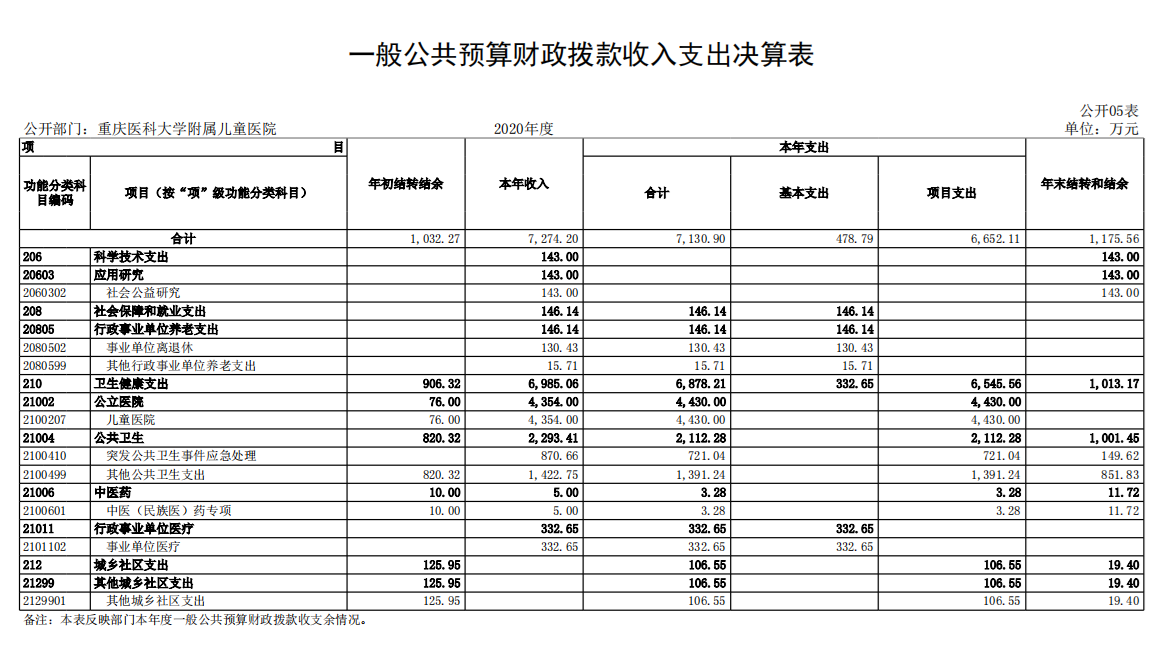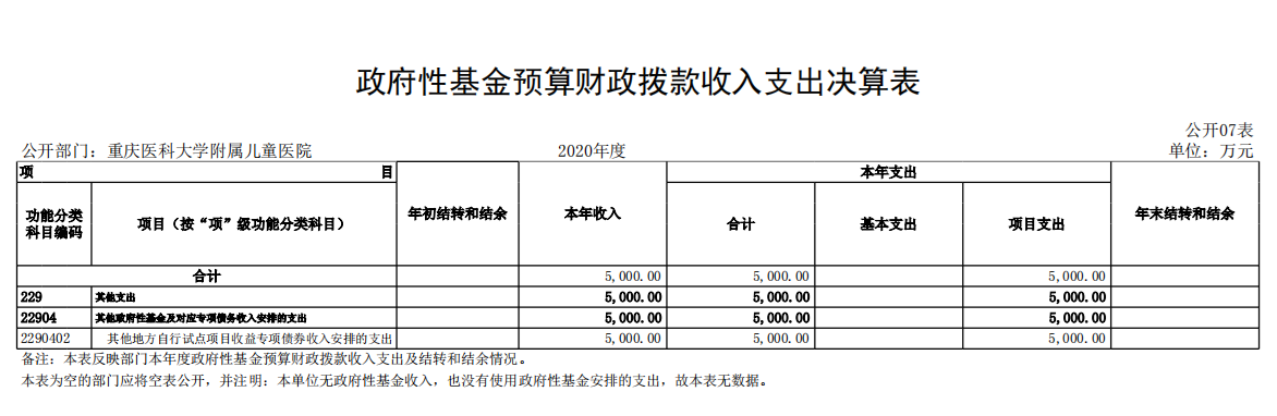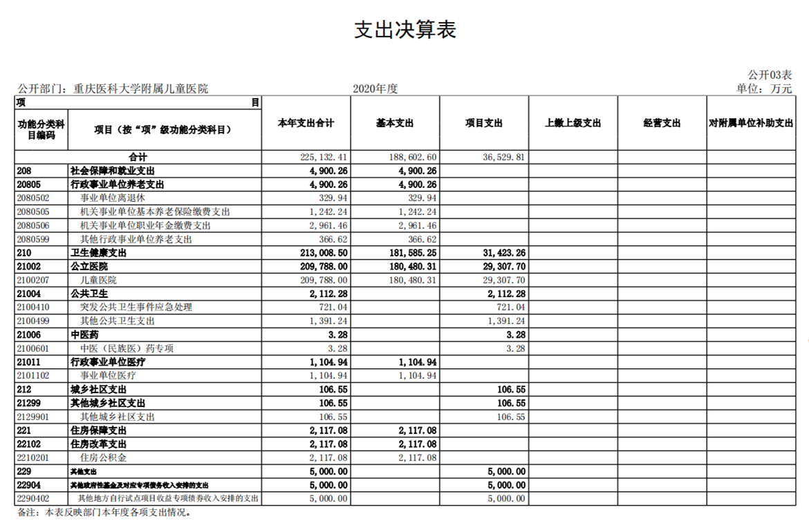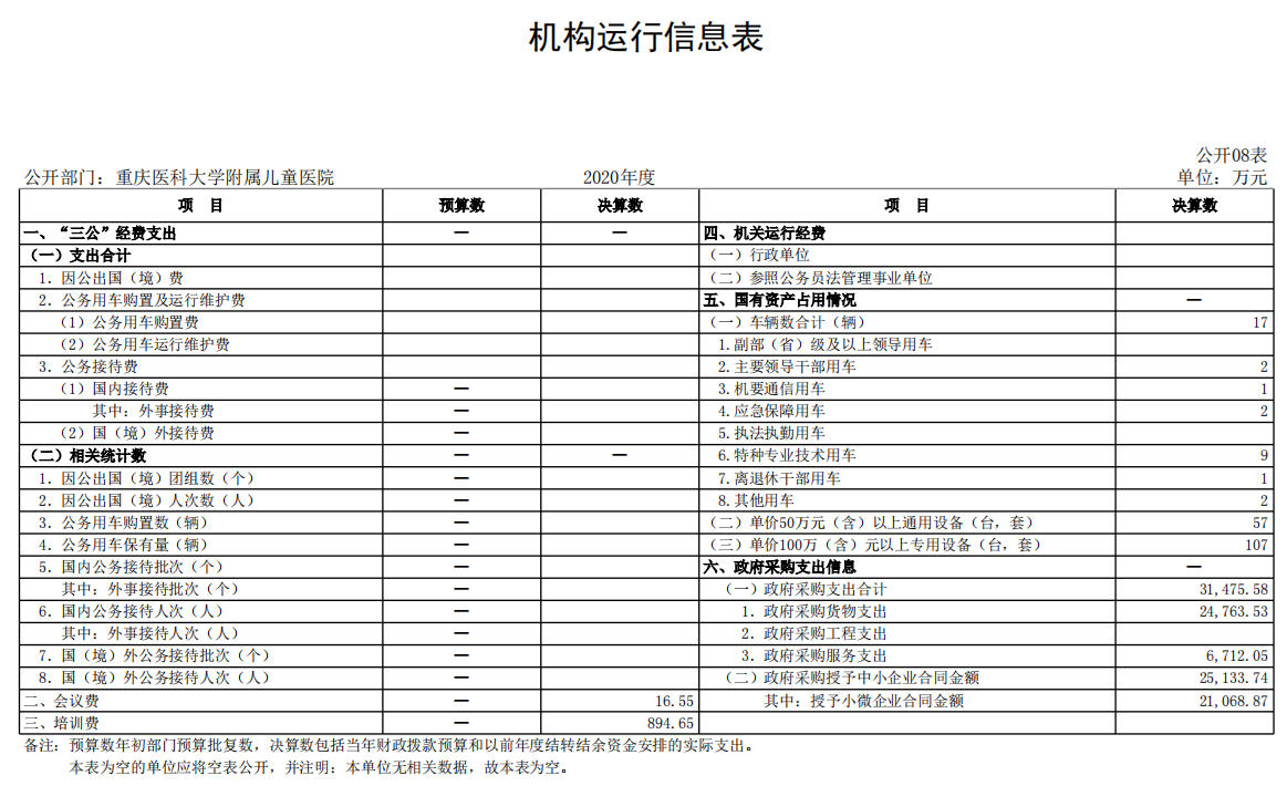 重庆医科大学附属儿童医院2020年度部门决算情况说明